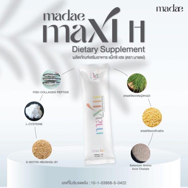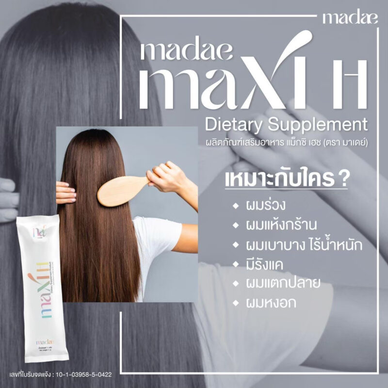 อาหารเสริมสำหรับผม แม็กซิ เฮช (ตรา มาเดย์) MADAE Maxi H Dietary Supplement เพื่อผมผมที่ดีและหนากว่า