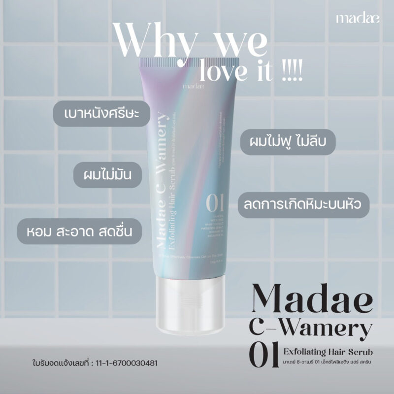 สครับหนังศรีษะ จากธรรชาติ มาเดย์ MADAE C-WAMERY 01 EXFOLIATING HAIR SCRUB มาเดย์ ซี-วาเมรี่ 01 เอ็กซ์โฟลิเอต้ิง แฮร์ สครับ